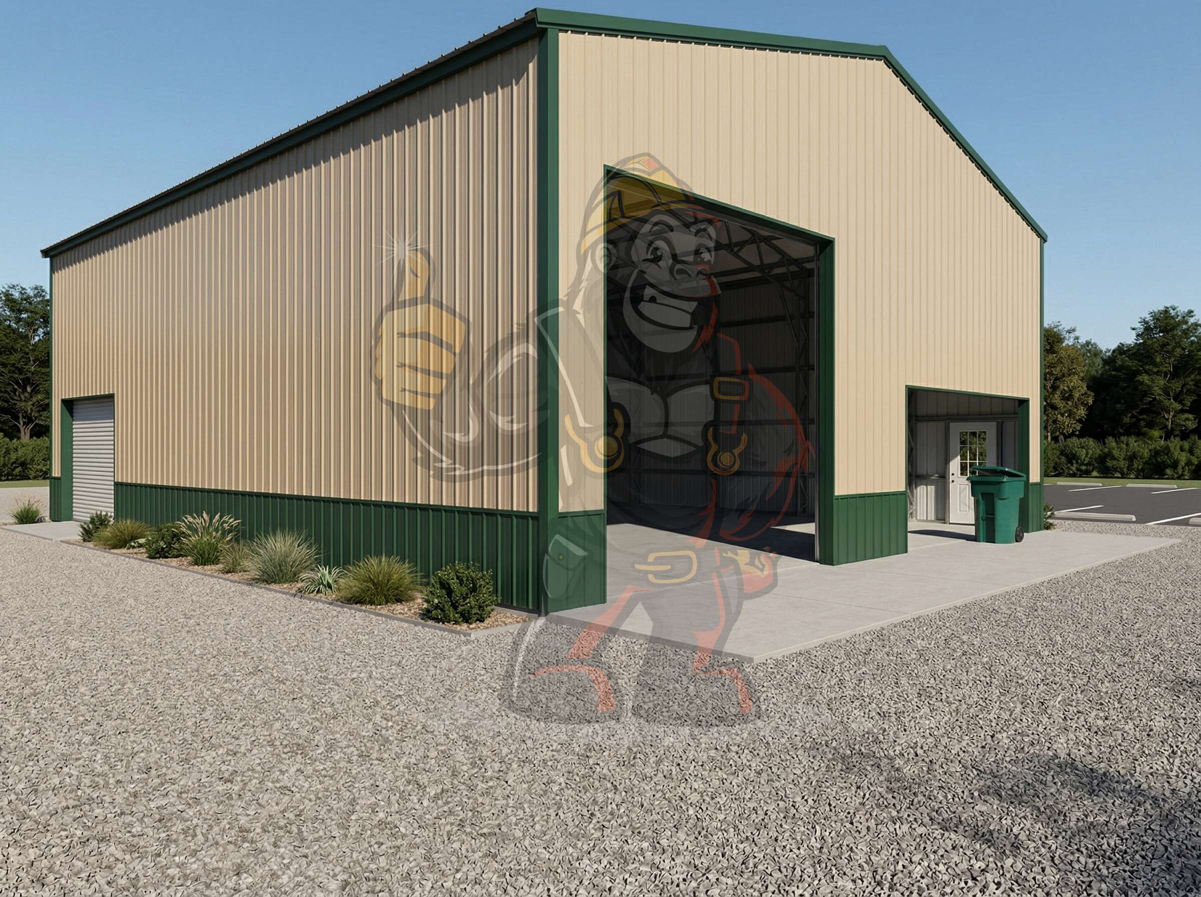 Upgrade your property with The Bastion 30′ x 40′ x 14′ Steel Workshop, engineered for heavy-duty multi-vehicle storage, expansive workshop use, or secure commercial and industrial workspace. Featuring bold two-tone coloring with green trim, large garage bays, a convenient walk-in door, and generous height, this building delivers unmatched protection and usability for demanding equipment, projects, and operations.