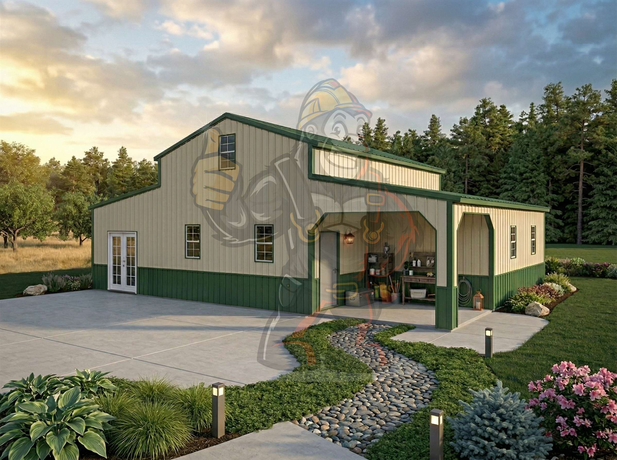 Upgrade your property with The Garrison 36' x 24' x 14' Steel Workshop, This robust steel workshop offers expansive space for multiple vehicles, heavy equipment, …