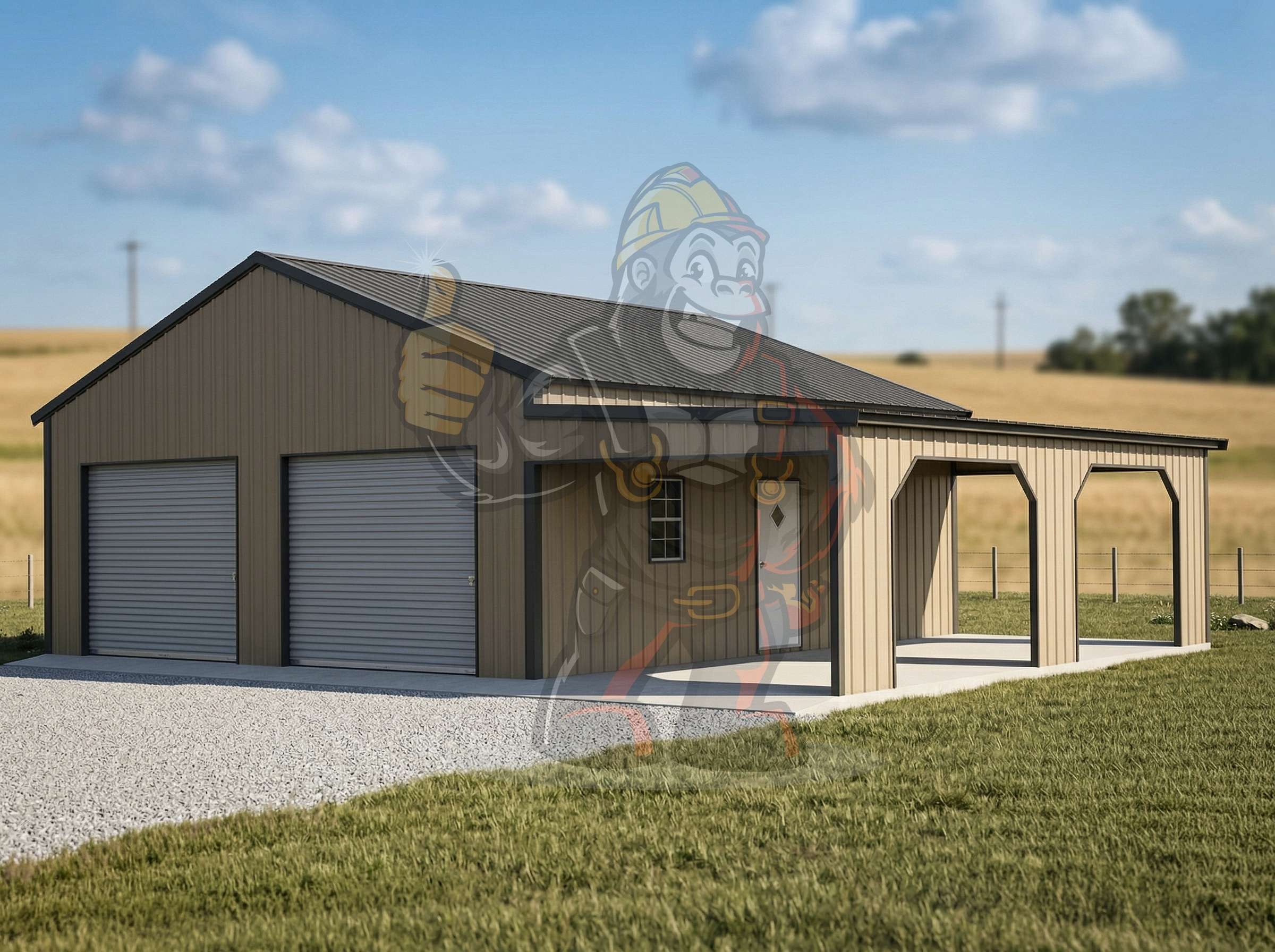 Upgrade your property with The Outpost 36′ x 24′ x 12′ Steel Workshop, perfect for multi-vehicle storage and a versatile workshop. This spacious layout comfortably fits several cars, trucks, or heavy equipment while providing ample room for tools, workbenches, and projects.